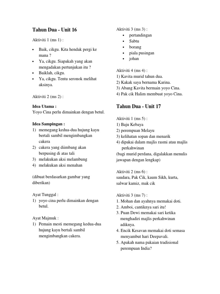 Jawapan Buku Aktiviti Tahun Dua Jilid 2 Pdf